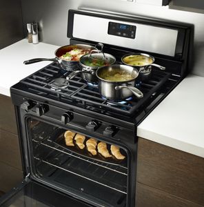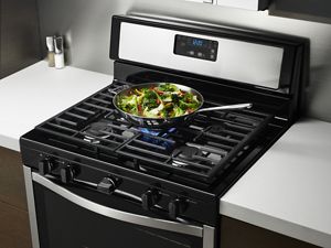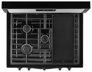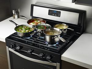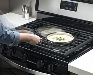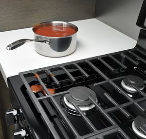 Cast-iron grates cover nearly the whole cooktop surface, giving you the flexibility to easily slide heavy pots and pans to optimal cooking locations. The grates are dishwasher-safe, and their satin finish resists wear and tear.