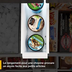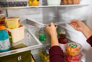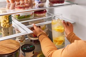 The Flexible Temperature Drawer lets you shifts between three temperature settings to store leftovers, sodas and juices and deli items at the touch of a button.