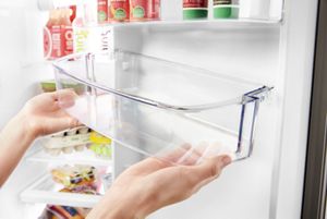 Get an extra full shelf in the freezer with an ice bin that's been moved to the door.