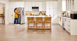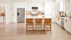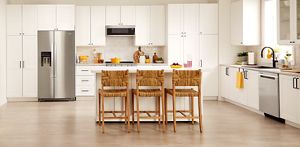 Add additional kitchen space with styling that fits virtually flush with the countertop. Designed so that only the door and handles extend beyond the front of standard cabinets, this model gives customers the built-in look without the higher costs.