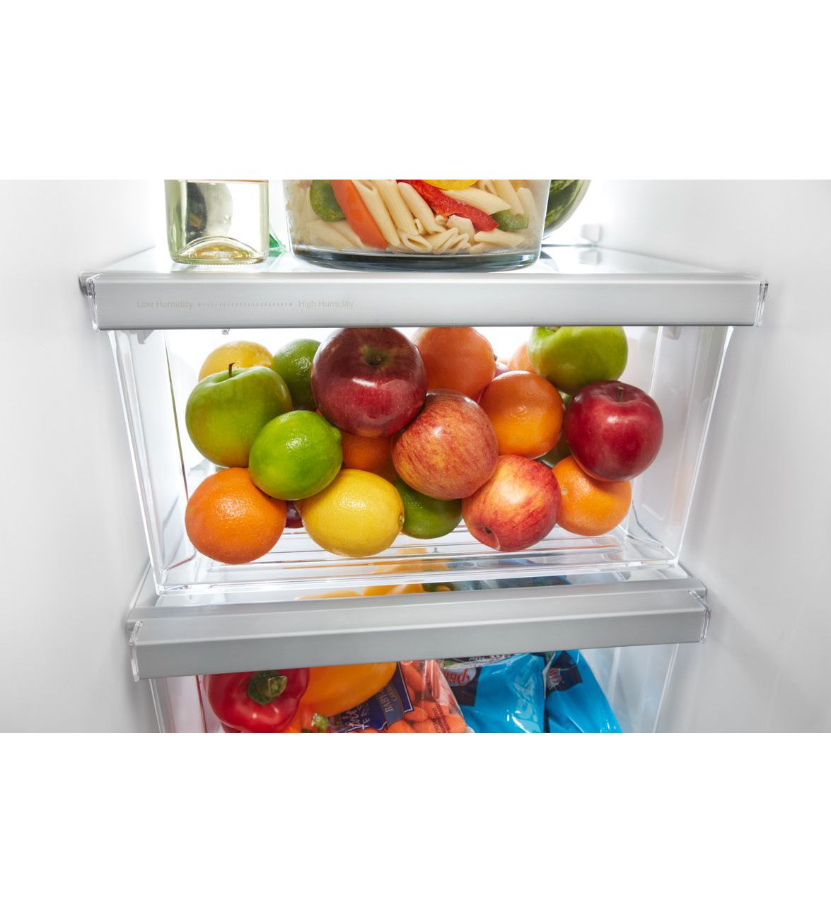 Take advantage of the ideal environment for food storage created by a system that intuitively senses and adapts. A single evaporator works in sync with built-in sensors to monitor temperatures in both the fresh food and frozen food sections. When there is a change in temperature, the vent and the fan allow air to flow between the two compartments until the temperature is back to its desired level.